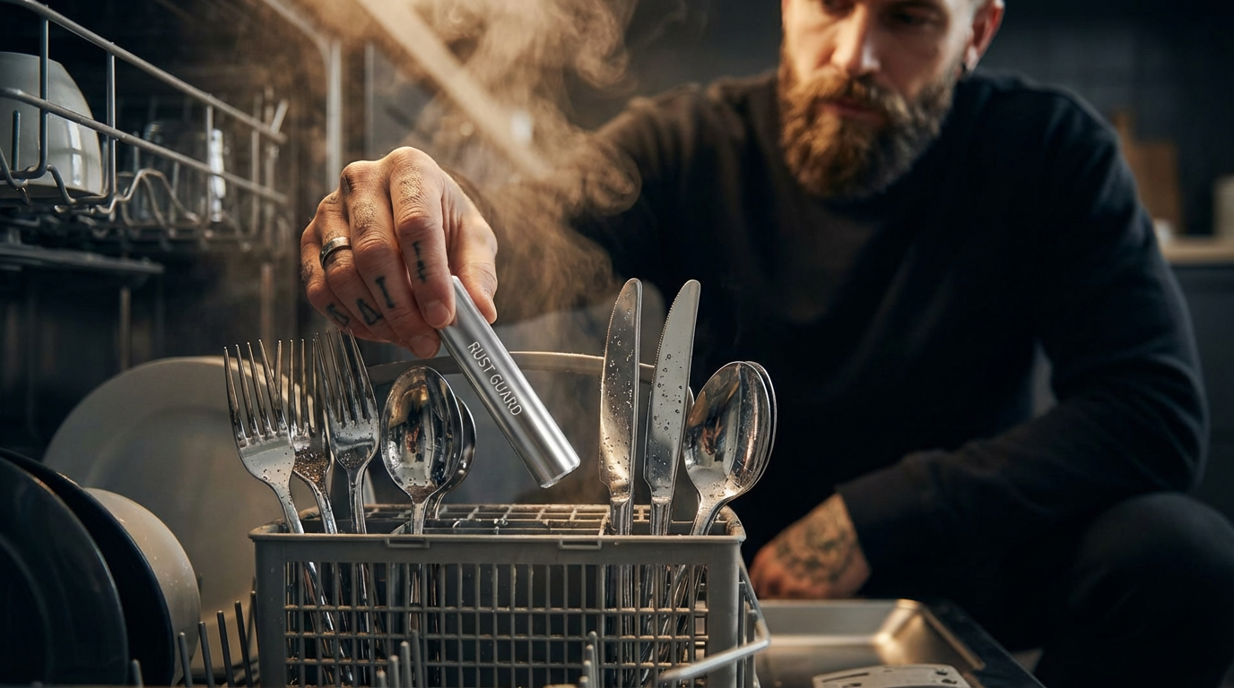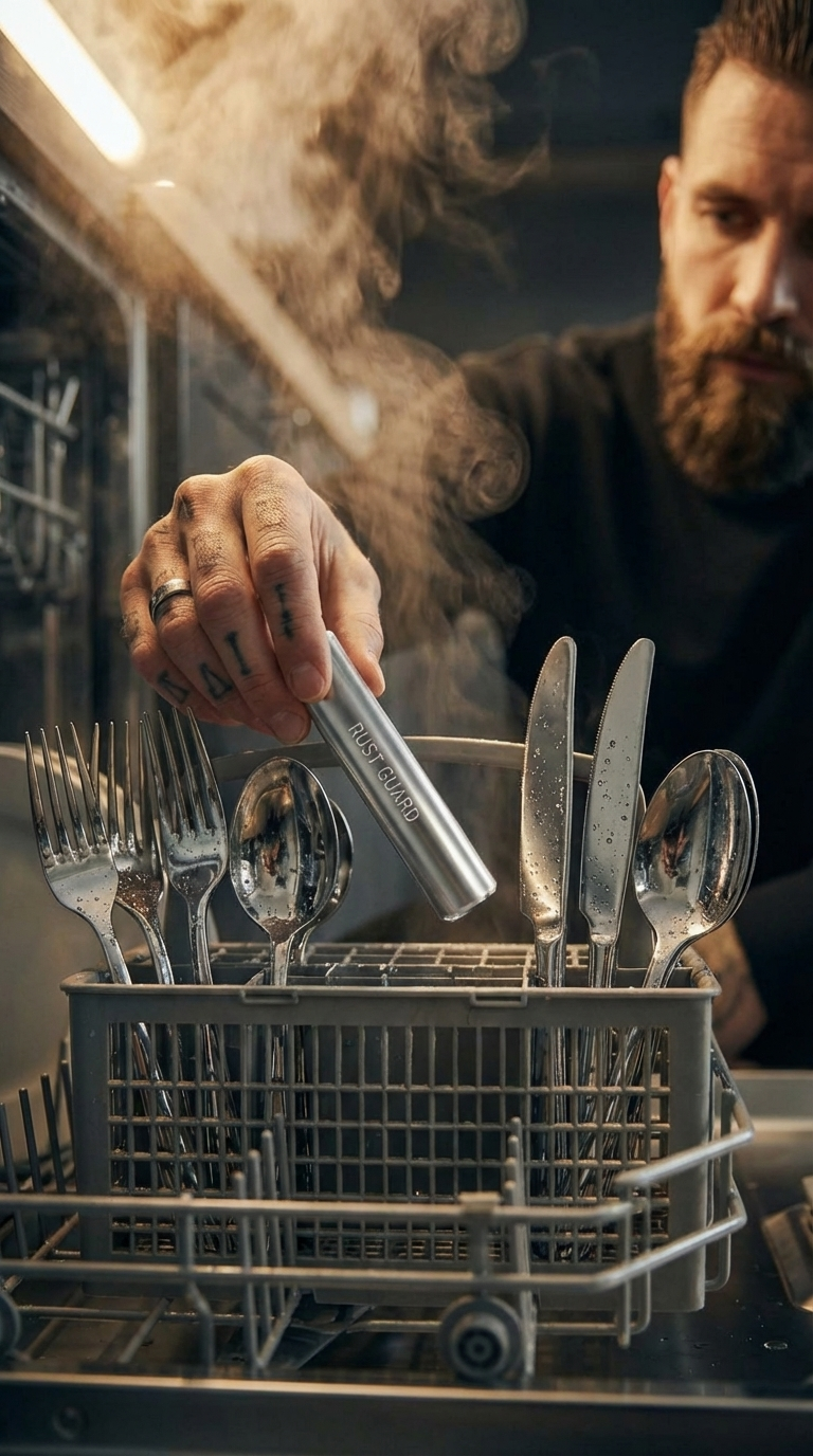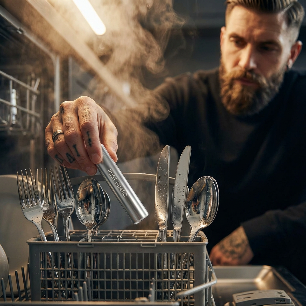 Rust stains on cutlery and inside dishwashers are more than annoying – they can damage your appliances and ruin your dishes. Rust Guard prevents this problem before it even starts.